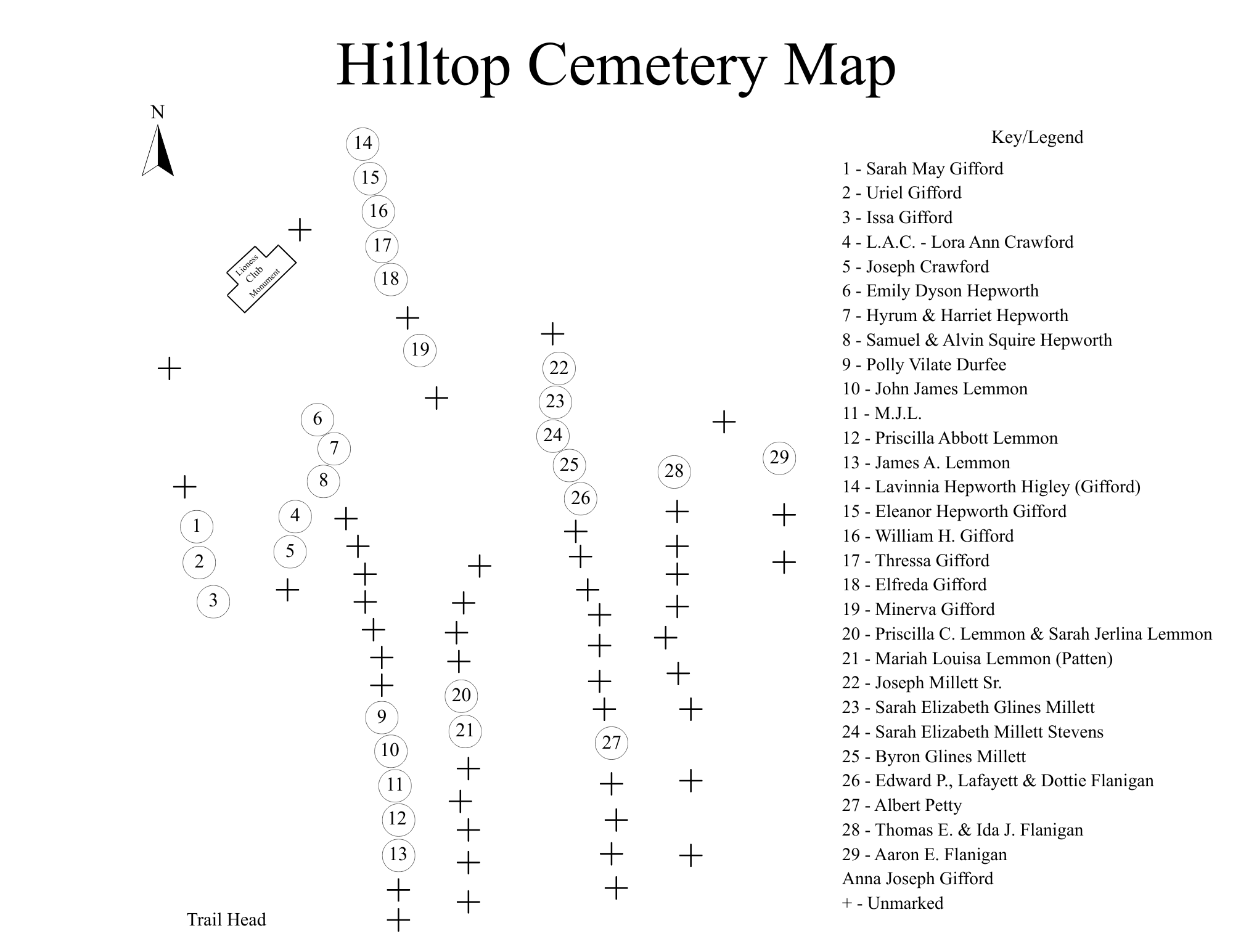 Review the Pioneer Cemetery Map and Key.